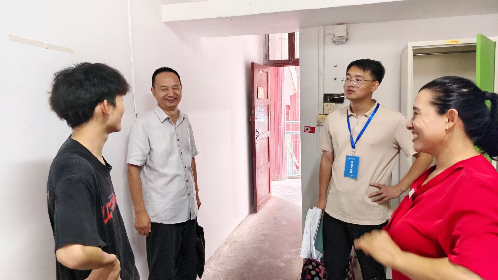 迎新期间,教育与心理学院院长孙平老师与辅导员张建军老师深入新生宿舍,亲切看望刚刚安顿下来的同学们。院领导细致询问同学们的家乡籍贯、入住感受,鼓励大家尽快适应新环境,融入集体生活,珍惜大学时光。辅导员还特意为新生讲解了校园安全注意事项和近期安排。