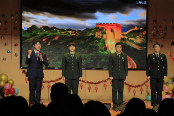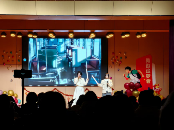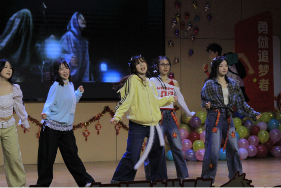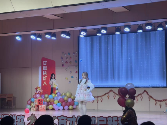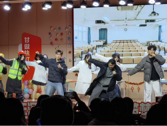 “教育是一场爱与成长的双向奔赴。”随后的节目聚焦师生携手、同心筑梦的温暖图景。一曲《葡萄成熟时》开场,醇厚的嗓音唱出“坚持终有回响”的人生哲理,如同一杯温热的茶,抚慰着每一颗奋斗中的心;紧接着,舞蹈串烧《you and me》《abracadabra》等,温情、魔幻、活力、俏皮的风格切换自如,台下尖叫声此起彼伏,仿佛一场青春派对。“有一种坚守叫‘我站立的地方!’”原创诗朗诵《我站立的地方》由四位退伍的同学深情演绎,他们用铿锵的语调讲述教育工作者扎根基层、守护山河的故事,“脚下是三尺讲台,身后是万家灯火”的誓言让不少教师眼眶湿润。随后,歌伴舞《新年欢歌》以欢快的藏族旋律与轻盈的舞步,将新年的祝福揉进每一个音符,“扎西德勒”的问候声中,全场师生跟着节奏拍手哼唱,喜庆氛围愈发浓厚。