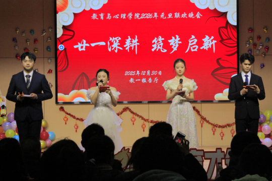 本网讯:金蛇曼舞辞旧岁,骐骥奔腾迎新年。12月30日晚,教一楼报告厅座无虚席,教育与心理学院“二十一年深耕路 育才筑梦启新程”2026年元旦联欢晚会在此精彩上演。学院领导、全体师生欢聚一堂,共同回顾过去一年的奋斗与收获,展望新一年的希望与梦想,用一场洋溢着青春与激情的视听盛宴,为建院21周年献上最诚挚的祝福,为新的一年奏响最昂扬的序曲。